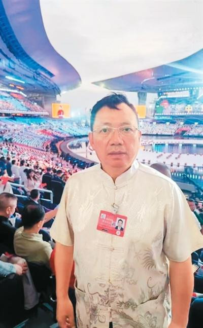 冯秉良在十五运会开幕式现场。